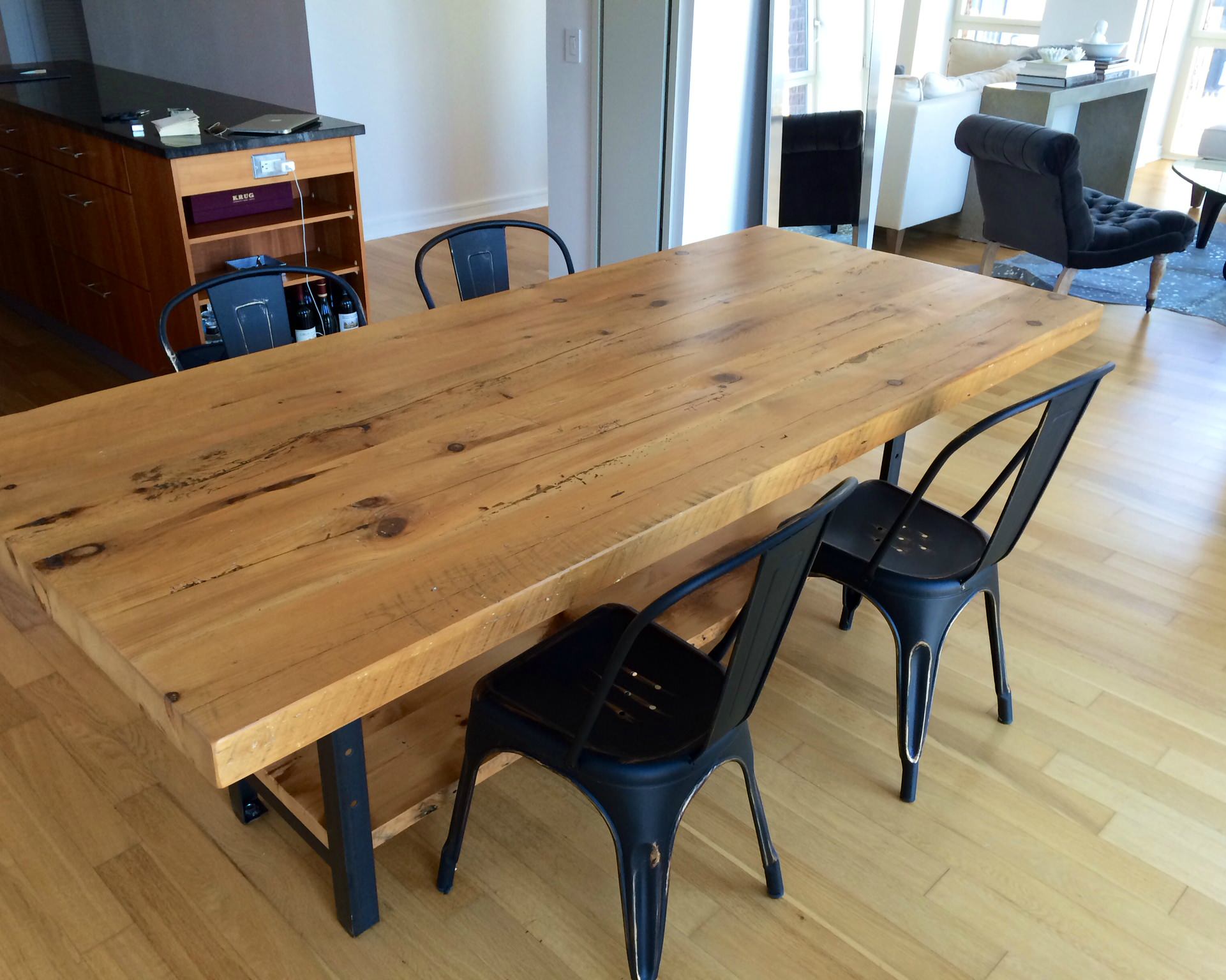 After using a cheap plastic card table as my only table for nearly two years i decided it was time for a change. This particular table was designed to sit 10. A table you can feel at home with. Assembling the pieces of wood of different origins is similar to completing a puzzle, but the highly unique and inspiring conversation result is definitely worth it. Amazing wood + master craftsman = fine furniture.